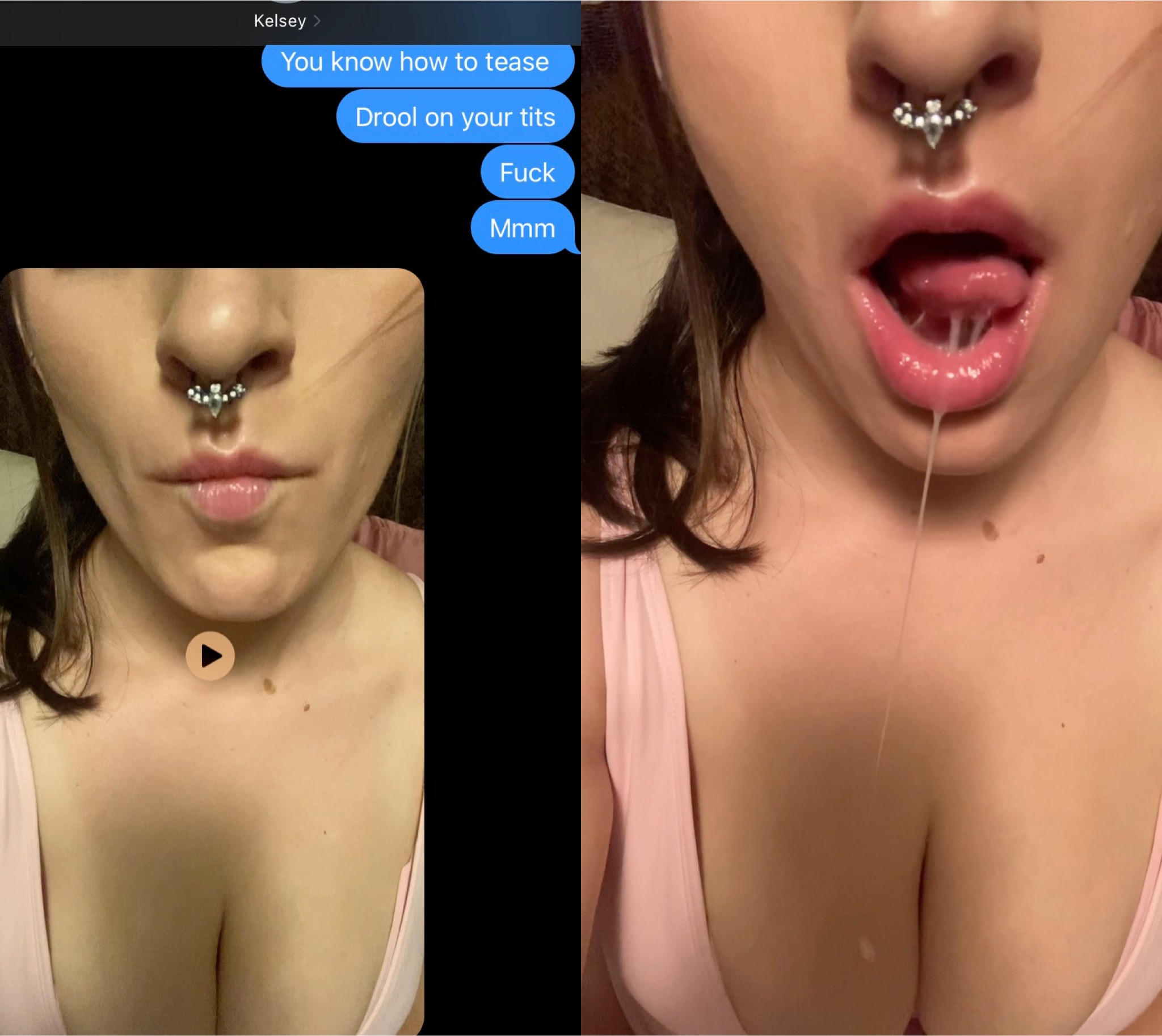 Such a whore. She sent me a few vids. Got her to drool all over herself. Love how hesitant she was at first but