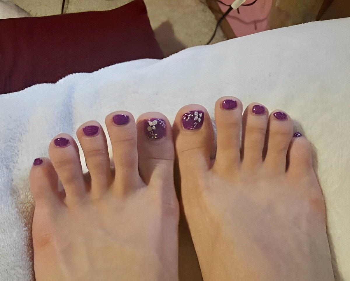 Vanessa showing off scrunched soles and toes.
